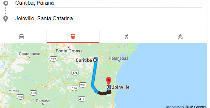 A distância entre a cidade de Curitiba no Paraná e a cidade de Joinville em Santa Catarina é de 132 km. O tempo estimado do percurso da viagem entre as duas cidades é …